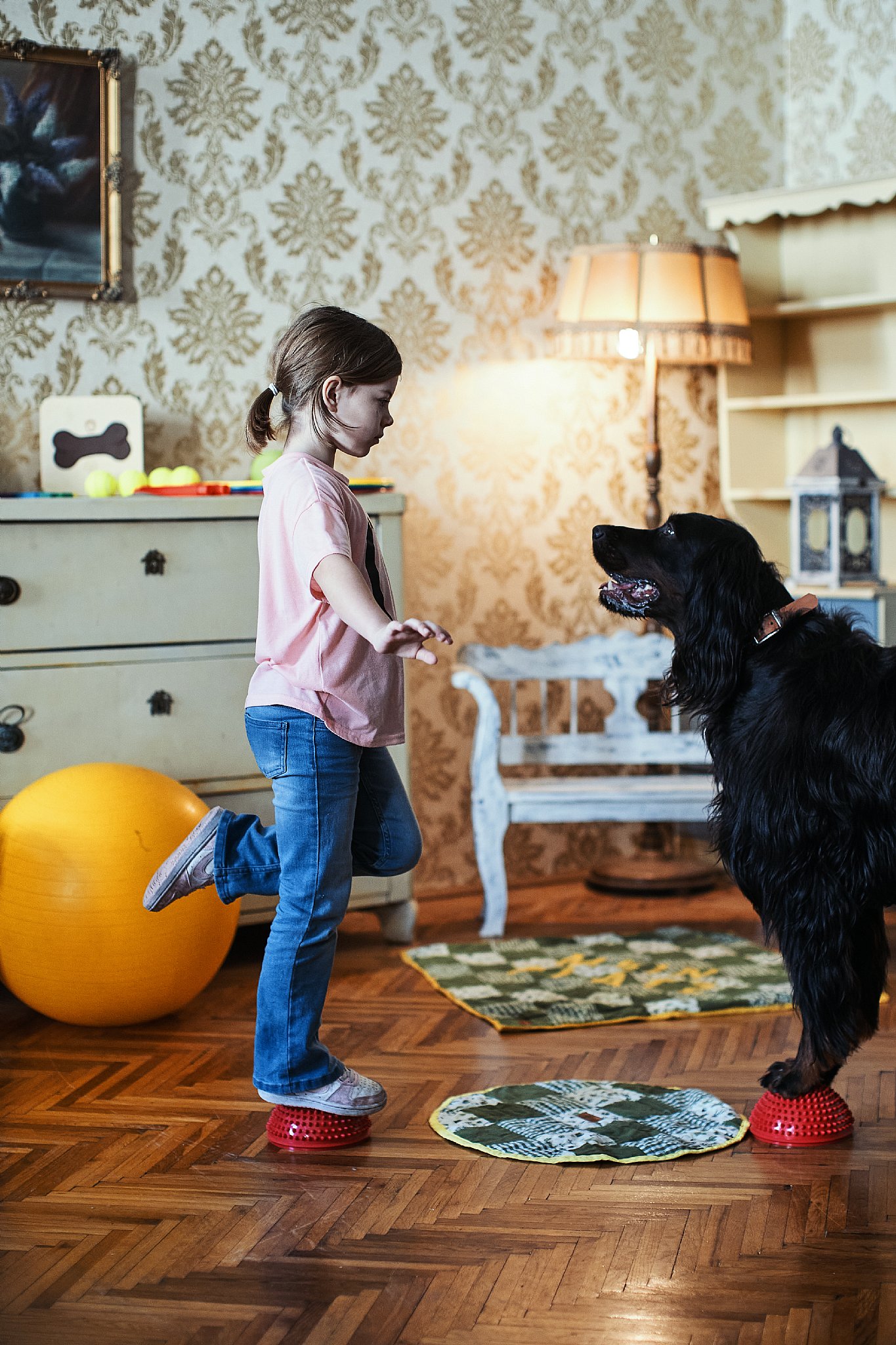 Kind gegen Therapiehund - beide stehen, beide sind konzentriert, beide wollen gewinnen🐾